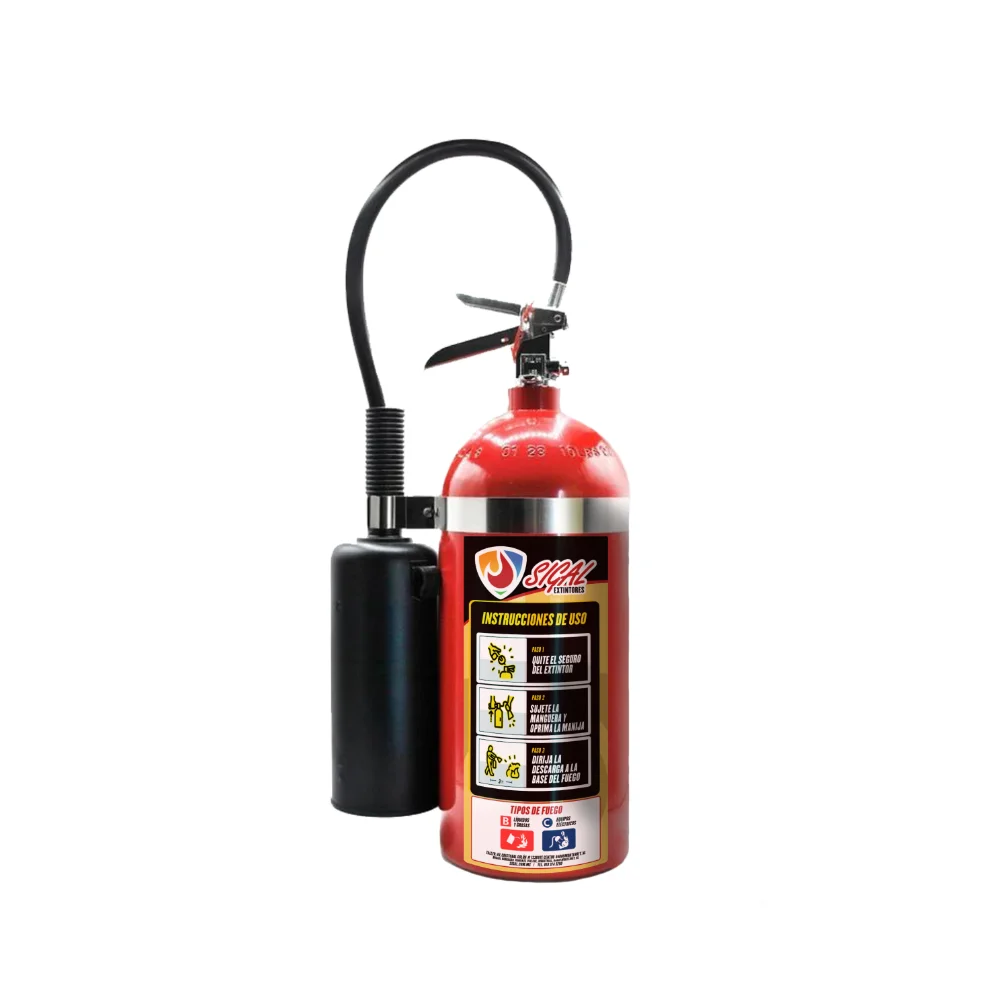 El extintor de CO2 de 10 lb es ideal para apagar incendios de tipo B (líquidos inflamables) y tipo C (equipos eléctricos). Es ideal para oficinas, salones con equipo electrónico y laboratorios. No deja residuos y es no conductor, garantizando seguridad en su uso. Su descarga rápida y fría sofoca el fuego desplazando el oxígeno.